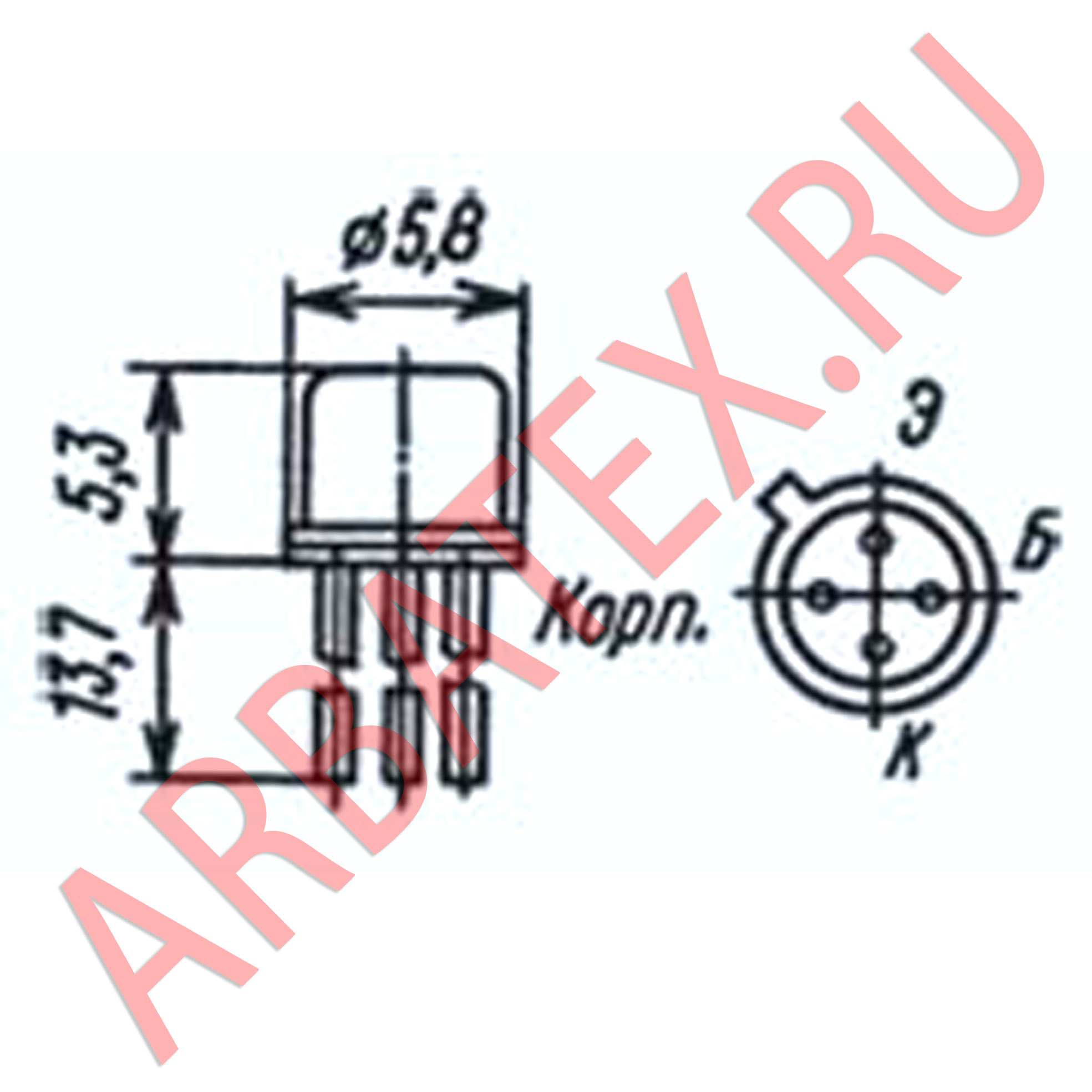Корпус транзистора электрически соединен с дополнительным (четвертым) выводом и может быть использован в качестве экрана.